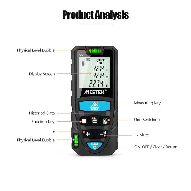 شرکت شنزن مستک تولز یکی برترین تولید کنندگاه ابزار آلات اندازه گیری دقیق با 15 سال سابقه در کشور چین میباشد . محصولات این شرکت شامل محصولات اندازه گیری الکترونیک، صنعت صدا و نور، سنجش حرارت، اپتیک و فاصله سنج های لیزی و هچنین دوربین های تصویری میباشد. استفاده از متر لیزری Mestek S6 M100 بسیار آسان است و می توان از آن برای اهداف مختلف استفاده کرد. شما به راحتی می توانید فاصله جسم را اندازه گیری کنید و به طور گسترده ای توسط آماتورها، حرفه ای ها و عکاسان حرفه ای قابل استفاده است. قابلیت عبور بالا، ضریب شکست بالا، لنز منحنی انتشار مواد کامپیوتری مقاوم در برابر حشرات، اندازه گیری دقیق، سرعت بالا، مصرف انرژی کم و عمر طولانی از ویژگی های این محصول می باشد.