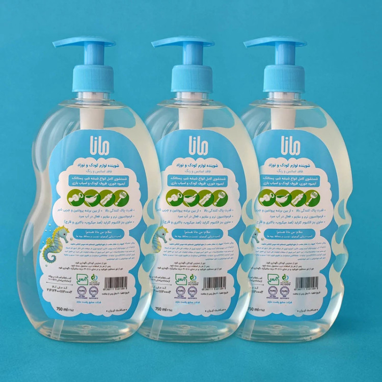 مایع شوینده و استریل کننده لوازم کودک و نوزاد مانا مدل پمپی حجم 750 میلی لیتر مجموعه 3 عددی