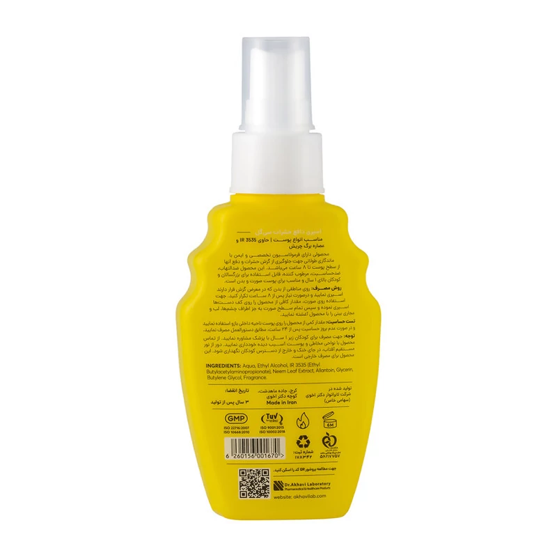 سایر مشخصات: مناسب برای بزرگسالان و کودکان بالای 1 سال - دارای اتیل بوتیل استیل آمینو پروپیونات، عصاره گیاه چریش، آلانتوئین