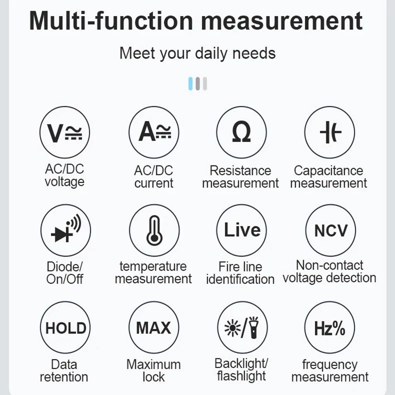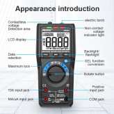 سایر توضیحات: اندازه گیری ولتاژ AC/DC، جریان AC/DC، مقاومت،نمایش تعداد 6000 ، تشخیص ولتاژ AC غیر تماسی. بررسی خودکار دیود یا تداوم ، Live تشخیص خط، ظرفیت خازنی، تست سیم برق ، چراغ قوه ، پراب K-Type برای تست TEMP ، ، دارای قاب سیلیکونی بسیار باکیفیت و مقاوم