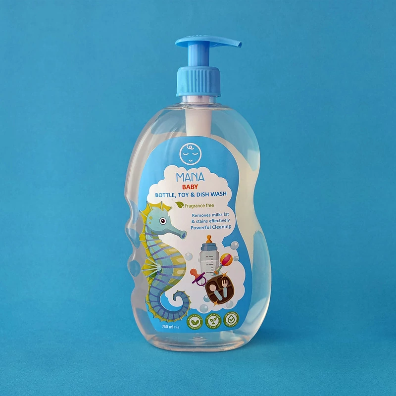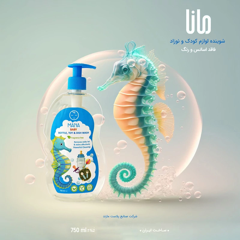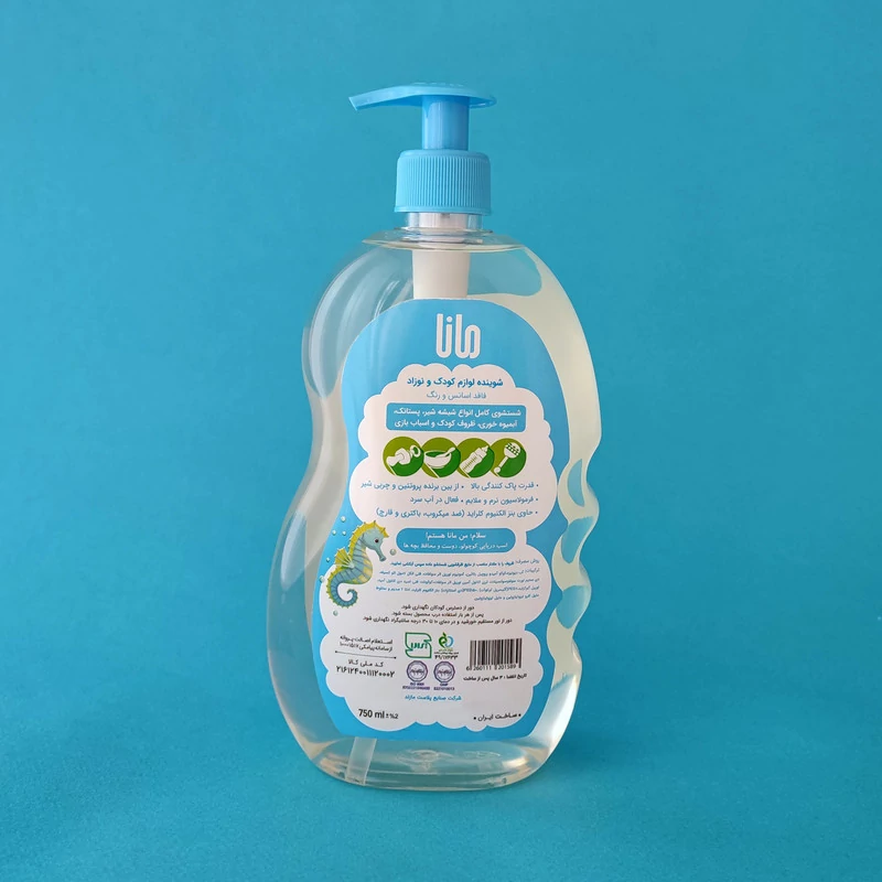 مایع شوینده و ضدعفونی کننده لوازم کودک و نوزاد مانا فاقد اسانس و رنگ بوده و مناسب شستشوی کامل انواع شیشه شیر، پستانک، آبمیوه خوری، ظروف کودک و اسباب بازی آنها می باشد.