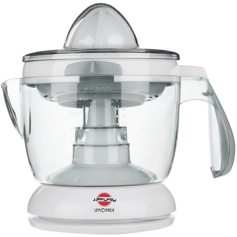 آب مرکبات گیری پارس خزر مدل لیموناد، یک محصول با طراحی بسیار ساده است. آب مرکبات گیرها بهخودیخود دستگاههای پرکاربردی هستند و ازآنجاییکه لیمو شیرازی در بین ایرانیان از جایگاه ویژهای برخوردار است و با مخروطیهای بزرگ موجود در اغلب مدلها نمیتوان آب آنها را گرفت شرکت پارس خزر مدل لیموناد را با یک مخروطی اضافی که سایز آن مناسب لیمو شیرازی است به بازار عرضه کرده است.ظرف مدرج این دستگاه 1 لیتری است و جهت موتور آن با هر فشار عوض میشود. از مشخصات کلی این محصول میتوان به ظرفیت مخزن آبمیوهگیری 1 لیتر، تیغهی پلاستیکی، توان مصرفی 20 وات، قابلیت تعیین درجه لرت میوه و قابلیت چرخش دوطرفه موتور اشاره کرد. در نظر داشته باشید که پارس خزر، یک شرکت بزرگی ایرانی است که از سال 1347 با همکاری شرکت توشیبا ژاپن، آغاز به کار کرده است. این شرکت در زمینههای ساخت لوازمخانگی، فعالیتهای گستردهای را در کشور انجام میدهد.