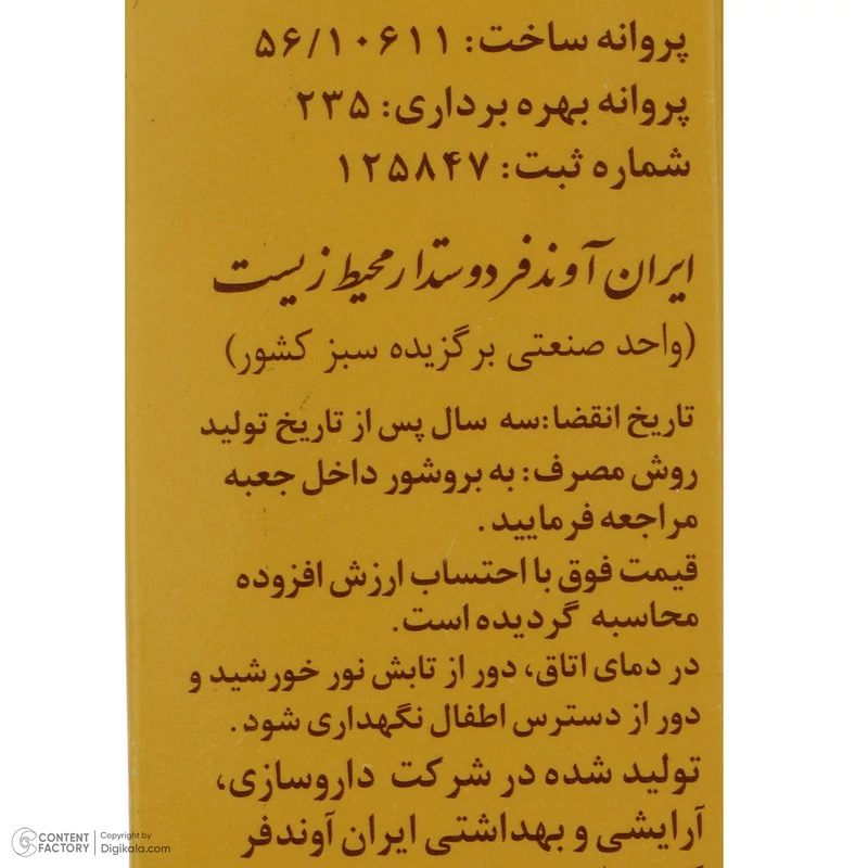 مشخصات فنی محصول: