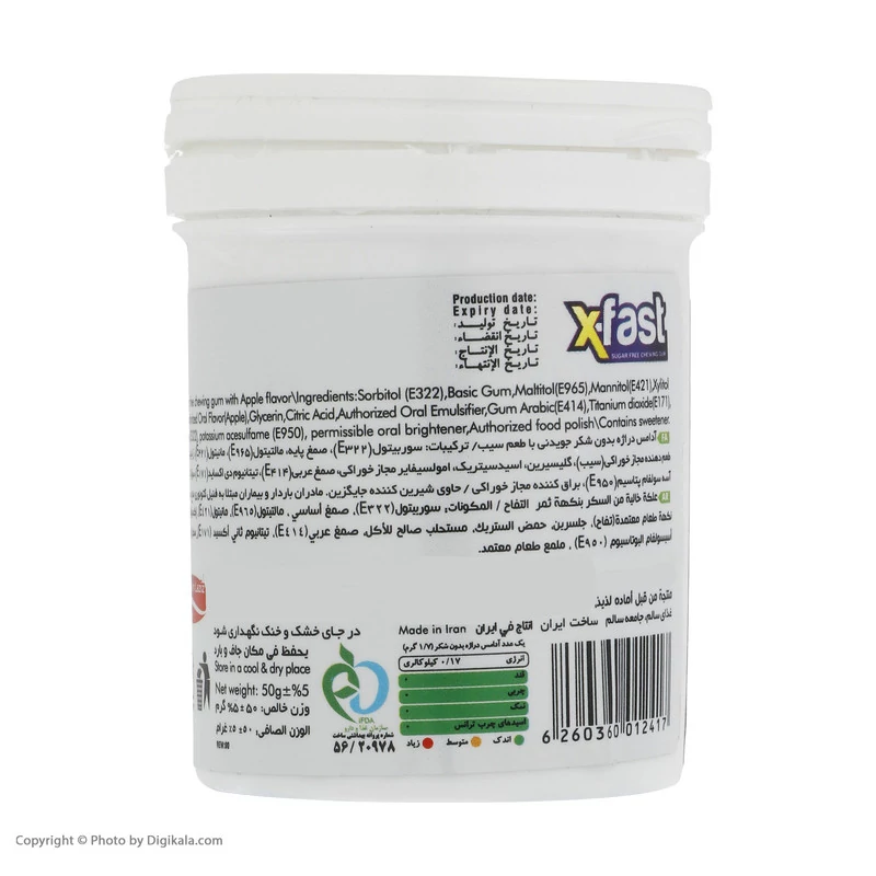 آدامس بدون شکر با طعم سیب ترش ایکس فست - 50 گرم