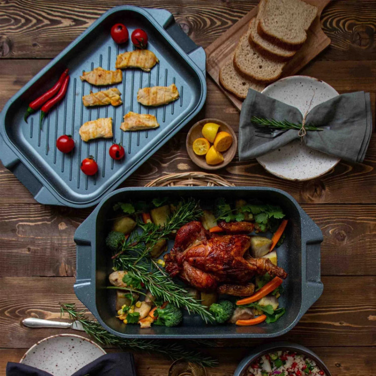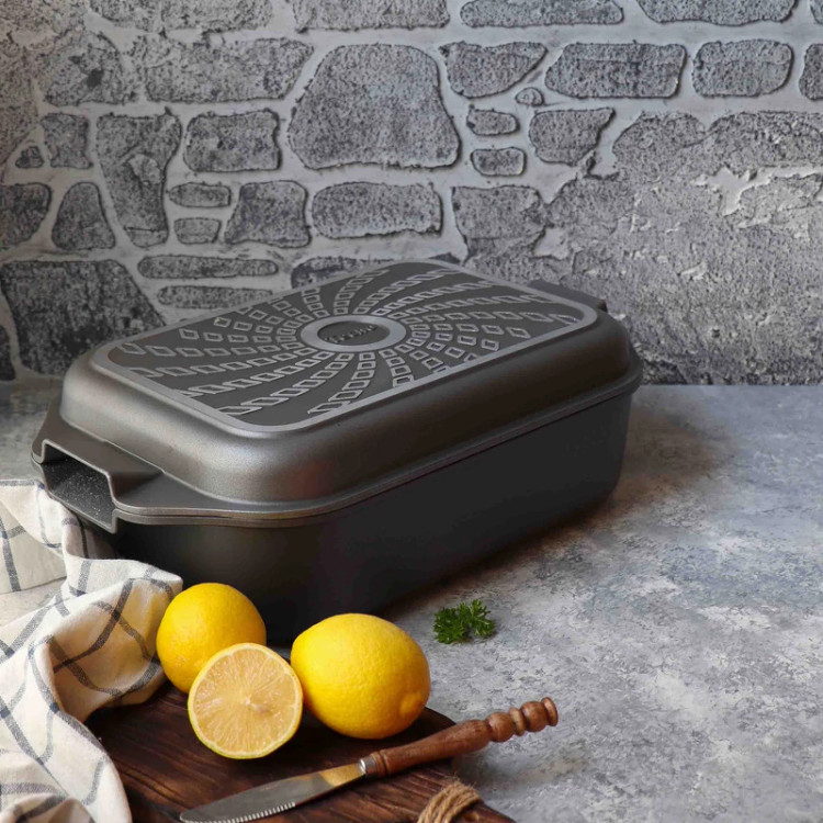 تابه رُستر آناهیتا یکی از ظروف پرکاربرد در آشپزخانه است که به دلیل طراحی و زیبایی ظاهری می توان از آن علاوه بر پخت و پز به عنوان ظرف سرو غذا نیز استفاده کرد. پوشش داخلی این ظرف گرانیت نچسب است. رُستر تکنو طرح آناهیتا از دو قسمت تشکیل شده، این دو قسمت شامل بدنه و درب گریل است. بدنه رستر آناهیتا با ارتفاع 10 سانتی متر برای پخت انواع مواد غذایی مانند طبخ مرغ شکم پر، بوقلمون، انواع خوراک، کیک، لازانیا و سایر غذاهای سنتی کاملا مناسب بوده و درب این رُستر قابلیت استفاده جهت گریل کردن مواد غذایی را دارد. رُستر تکنو ایده آل برای آشپزی سنتی و فرنگی بوده و در عین حال ظرفی کاربردی هم در آشپزخانه و هم روی میز غذا است.