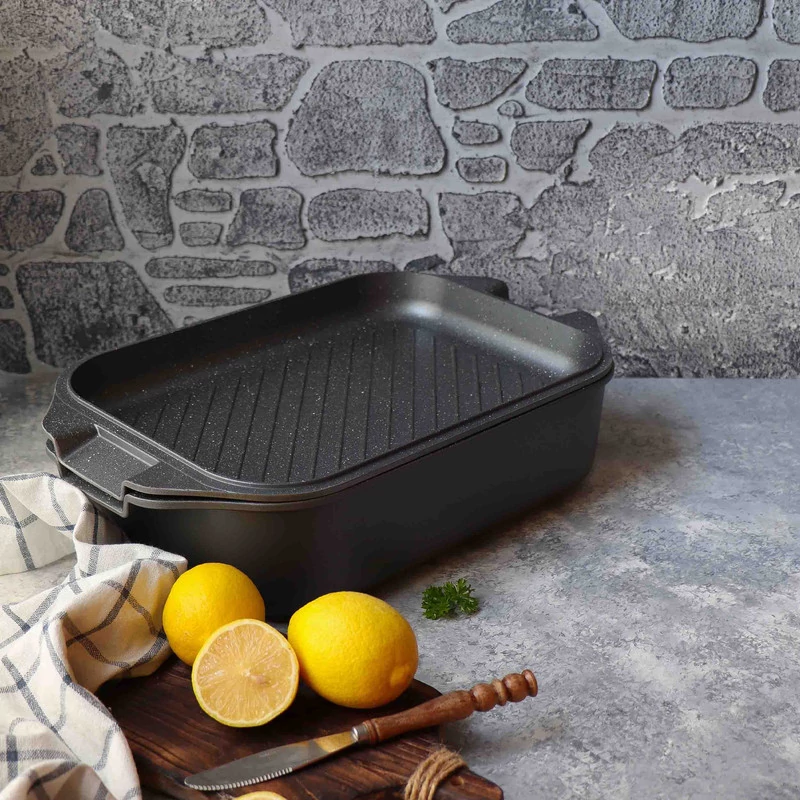 تابه رُستر آناهیتا یکی از ظروف پرکاربرد در آشپزخانه است که به دلیل طراحی و زیبایی ظاهری می توان از آن علاوه بر پخت و پز به عنوان ظرف سرو غذا نیز استفاده کرد. پوشش داخلی این ظرف گرانیت نچسب است. رُستر تکنو طرح آناهیتا از دو قسمت تشکیل شده، این دو قسمت شامل بدنه و درب گریل است. بدنه رستر آناهیتا با ارتفاع 10 سانتی متر برای پخت انواع مواد غذایی مانند طبخ مرغ شکم پر، بوقلمون، انواع خوراک، کیک، لازانیا و سایر غذاهای سنتی کاملا مناسب بوده و درب این رُستر قابلیت استفاده جهت گریل کردن مواد غذایی را دارد. رُستر تکنو ایده آل برای آشپزی سنتی و فرنگی بوده و در عین حال ظرفی کاربردی هم در آشپزخانه و هم روی میز غذا است.