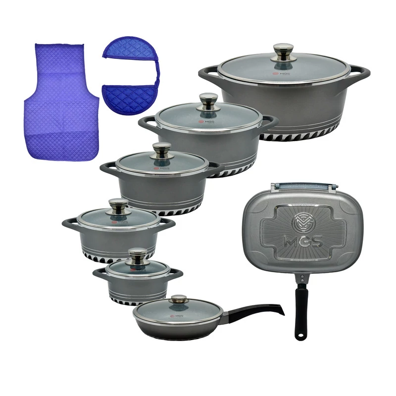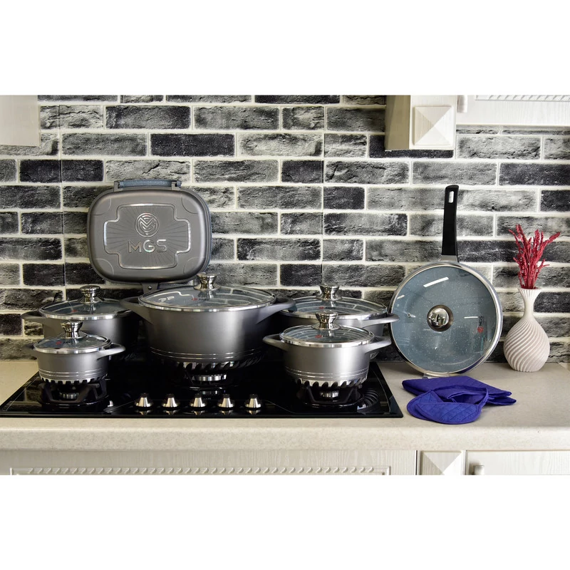 ساختار بدنه این ظروف از آلومینیوم ساخته شده و روکش داخلی آنها از جنس گرانیت نچسب است که آشپزی را آسانتر کرده و به شستشوی سریع کمک میکند. از ویژگیهای خاص این سرویس میتوان به کفه سه لایه و طراحی مناسب برای پخش بهتر گرما اشاره کرد که باعث پخت یکنواخت مواد غذایی میشود. دستههای این سرویس از جنس آلومینیوم و به صورت یکپارچه با بدنه طراحی شدهاند که دوام بالایی را تضمین میکند. این مجموعه برای استفاده روی اجاق گاز مناسب است. در نهایت، سرویس پخت و پز ام جی اس با تنوع بالای اقلام و کیفیت ساخت مطلوب، یک انتخاب جامع برای هر آشپزخانهای است.