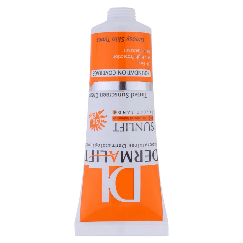 کرم ضد آفتاب رنگی درمالیفت مدل سانلیفت SPF 50 حاوی محافظ UVA و UVBمناسب پوستهای چرب حجم 40 میلیلیتر