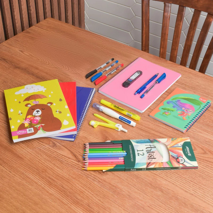 محتویات بسته: خودکار, دفتر, مداد نوکی, غلط گیر, ماژیک, نوک مداد نوکی