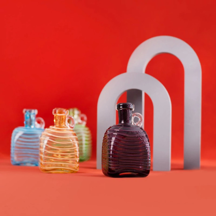 بطری شیشه ای بومی مدل نوار منظم استوانه ای