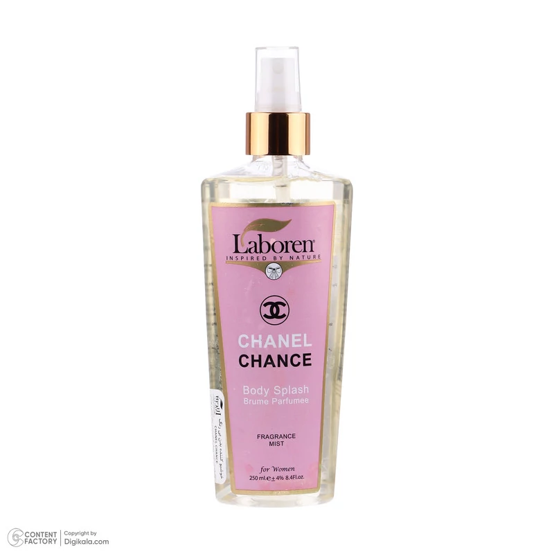 بادی اسپلش یا خوشبوکننده بدن، یکی از محصولات آرایشی بهداشتی است که امروز به سبک زندگی (Life Style) اضافه شده است. میتوان از بادی اسپلش بعد از استحمام، قبل و بعد از ورزش و برای افزایش جذابیت استفاده کرد. بادی اسپلشهای مردانه و زنانه لابورن با رایحه عطرهای معروف دنیا، جذابیت بیشتری به شما میبخشند. بادی اسپلش زنانه شنل چنس لابورن با رایحه عطر چنس از برند شنل، حاوی روغن و مواد مرطوبکننده قوی است که علاوه بر از بین بردن بوی نامطبوع و کاهش تعریق، پوست را نرم، مرطوب و شفاف میکند. این بادی اسپلش به صورت مایع روی بدن اسپری میشود و به دلیل استفاده از مواد طبیعی و عدم بهکارگیری گاز، حساسیتزا نیست.