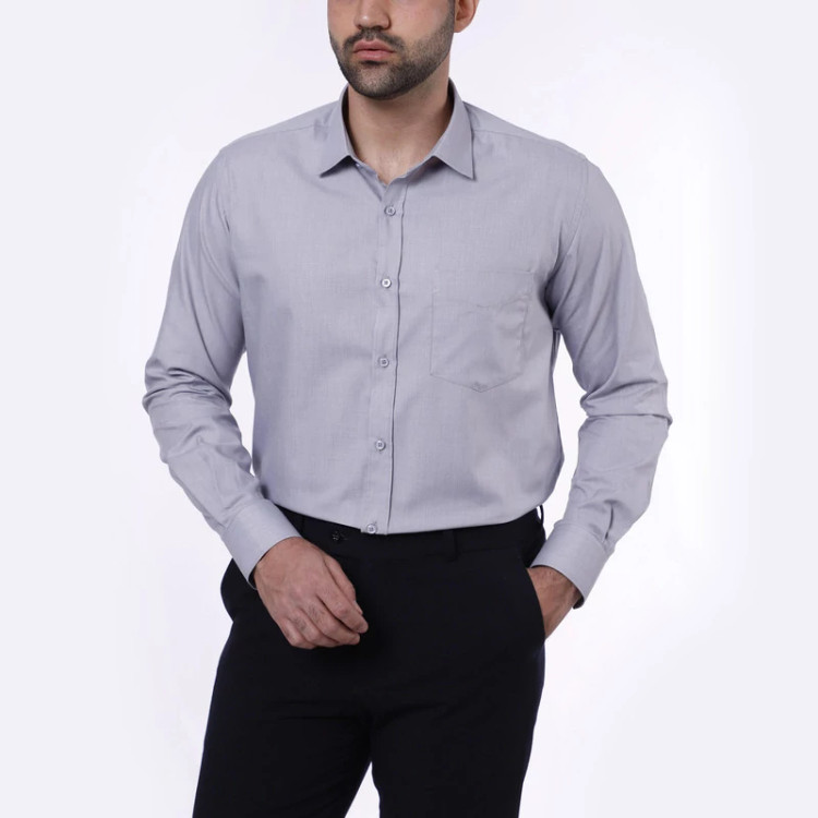 پیراهن آستین بلند یقه برگردان مردانه دیجی استایل اسنشیال مدل 03 رنگ طوسی