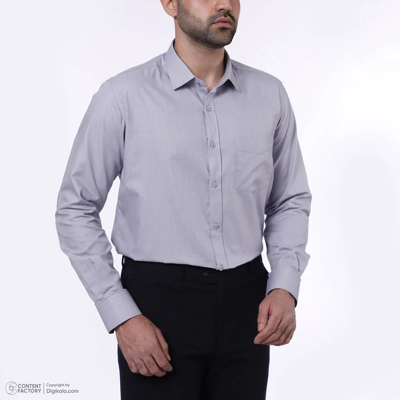 پیراهن آستین بلند یقه برگردان مردانه دیجی استایل اسنشیال مدل 03 رنگ طوسی