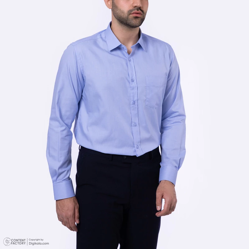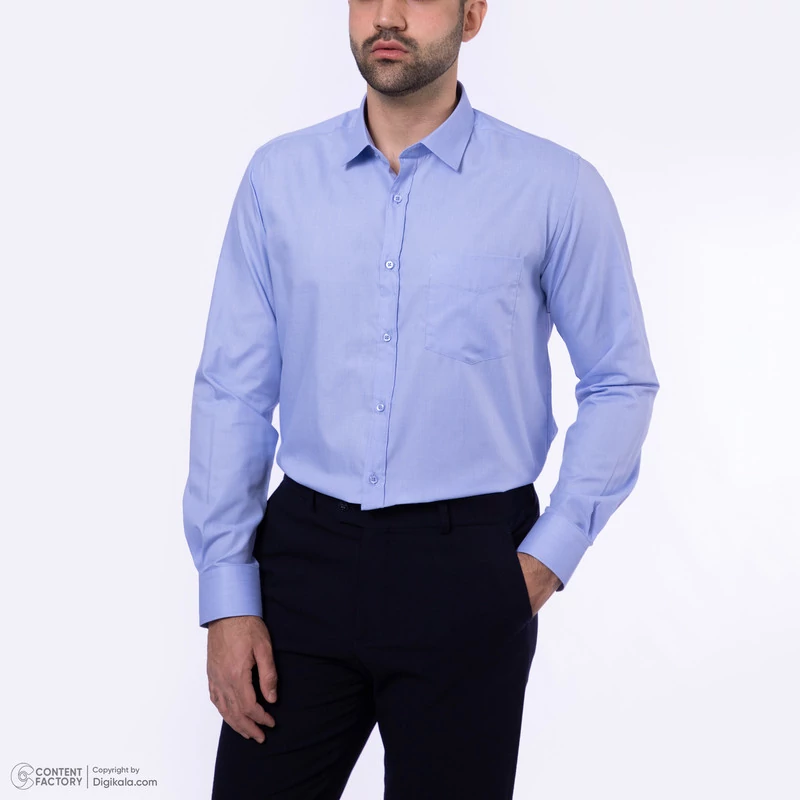 پیراهن آستین بلند یقه برگردان مردانه دیجی استایل اسنشیال مدل 04 رنگ آبی