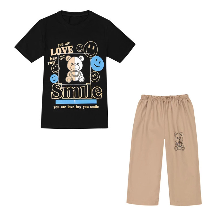ست تی شرت آستین کوتاه و شلوارک بچگانه مدل 01 رنگ مشکی