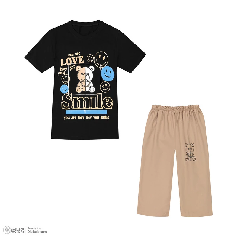 ست تی شرت آستین کوتاه و شلوارک بچگانه مدل 01 رنگ مشکی
