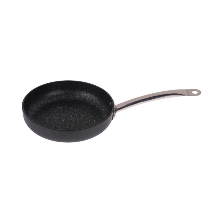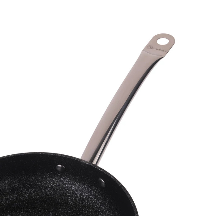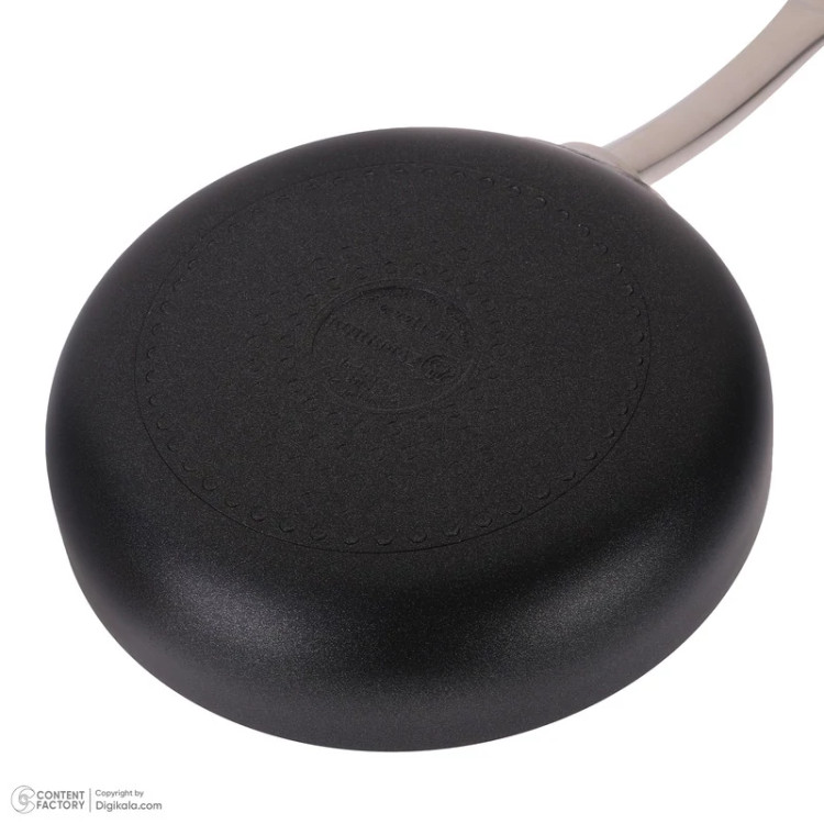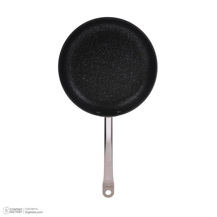 سایر توضیحات: جنس دسته: استیل ضدزنگ با طراحی فلنچی برای کاهش انتقال حرارت - روکش: پوشش نچسب PTFE با ظاهر گرانیتی (Volcanic-looking PTFE) - جنس بدنه: آلومینیوم با روکش نچسب - مناسب برای انواع اجاقها از جمله القایی (Induction)، نچسب، مقاوم در برابر خراش، توزیع یکنواخت حرارت، پخت با روغن کمتر