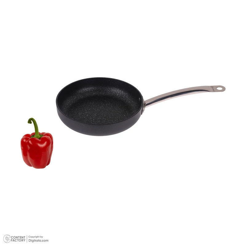 سایر توضیحات: جنس دسته: استیل ضدزنگ با طراحی فلنچی برای کاهش انتقال حرارت - روکش: پوشش نچسب PTFE با ظاهر گرانیتی (Volcanic-looking PTFE) - جنس بدنه: آلومینیوم با روکش نچسب - مناسب برای انواع اجاقها از جمله القایی (Induction)، نچسب، مقاوم در برابر خراش، توزیع یکنواخت حرارت، پخت با روغن کمتر