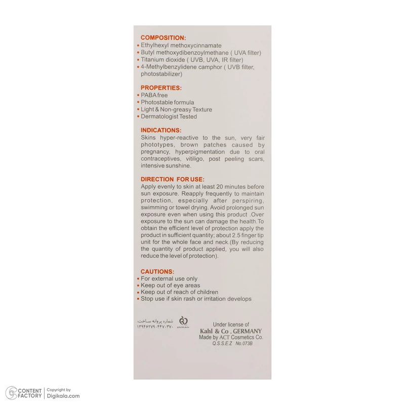 حجم ضد آفتاب: 50 میلیلیتر