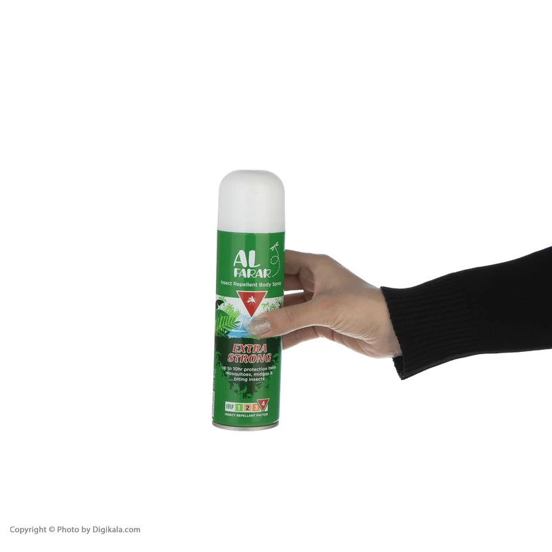 سایر مشخصات: با فرمول پیشرفته و محافظ لایه اوزون، با رایحه مطبوع، بدون حساسیت، تا 10 ساعت محافظت با یکبار اسپری کردن، مناسب برای محافظت در برابر انوع حشرات گزنده مانند پشه، ساس، کک، کنه، و ... ، مناسب برای بزرگسالان و کودکان 3 سال به بالا