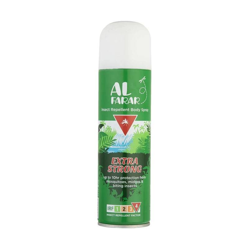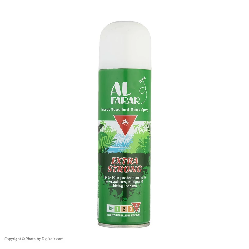 این محصول اسپری بدن برای دور کننده حشرات می باشد. با الفرار از گزند و مزاحمت حشرات در امان خواهید بود. حاوی 20 % DEET برای محافظت طولانی مدت در برابر پشه، ساس، کک، کنه و سایر حشرات گزنده می باشد.