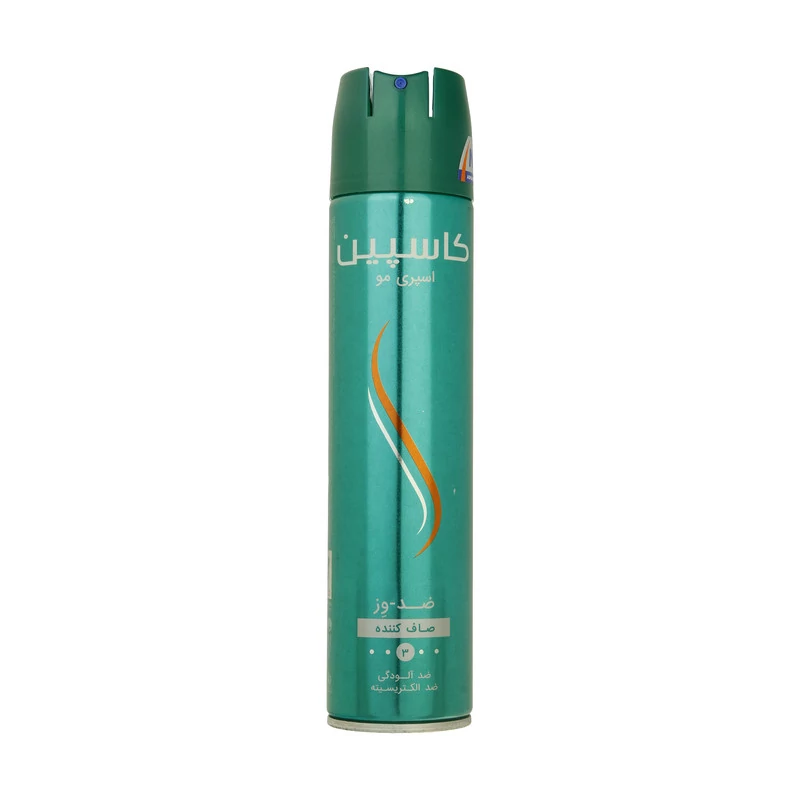 اسپری حالت دهنده و ضد وز مو کاسپین حجم 250 میلی لیتری با ویژگی درخشان کننده، تثبیت کننده و صاف کننده مو با قدرت نگهداری حالت مو سطح 3