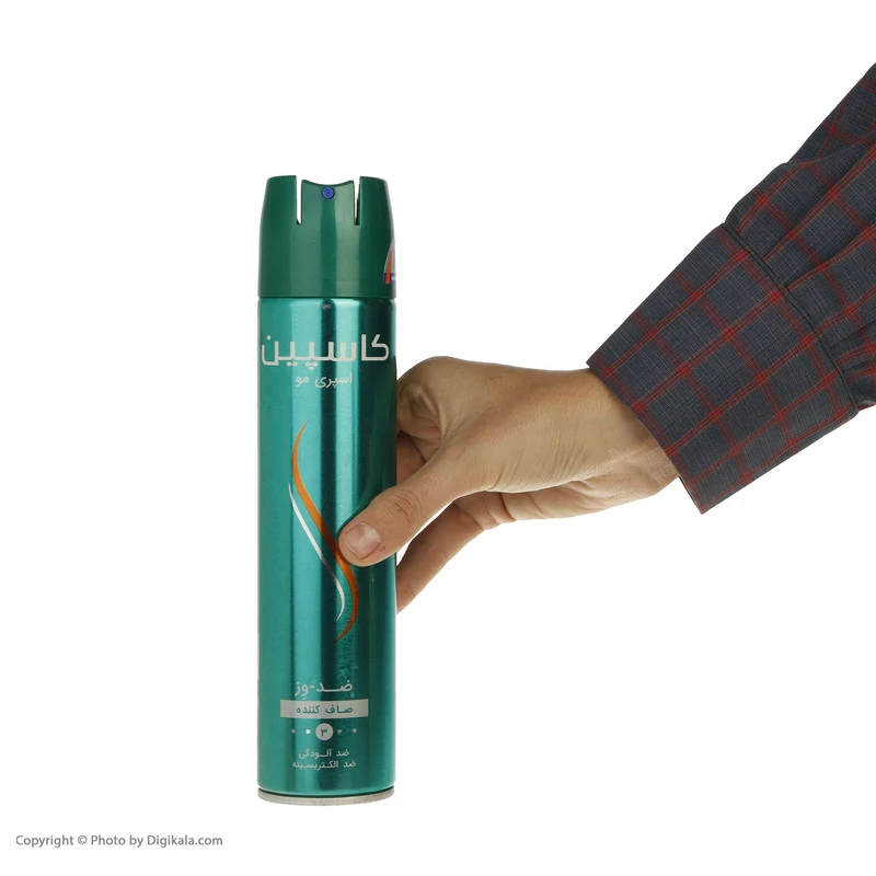 اسپری حالت دهنده و ضد وز مو کاسپین حجم 250 میلی لیتری با ویژگی درخشان کننده، تثبیت کننده و صاف کننده مو با قدرت نگهدا...