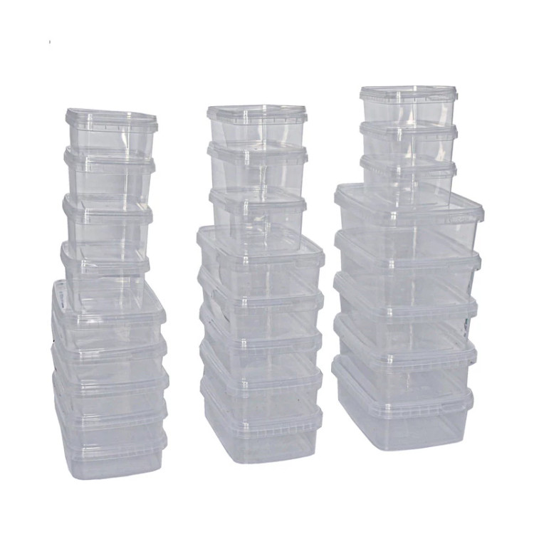 ظرف نگهدارنده فریزری .مایکروویوی مجموعه 25 عددی دارای رنگ شفاف می باشد این ظرف دارای ضخامت مناسب و استحکام کافی است و کاملا مناسب جهت بستهبندی خرما و عسل و شیرینی و … میباشد. این ظرف به دلیل شفافیت بسیار پرطرفدار است زیرا محصولات داخل آن کاملا مشخص بوده و بینهایت زیبا جلوه میکند.