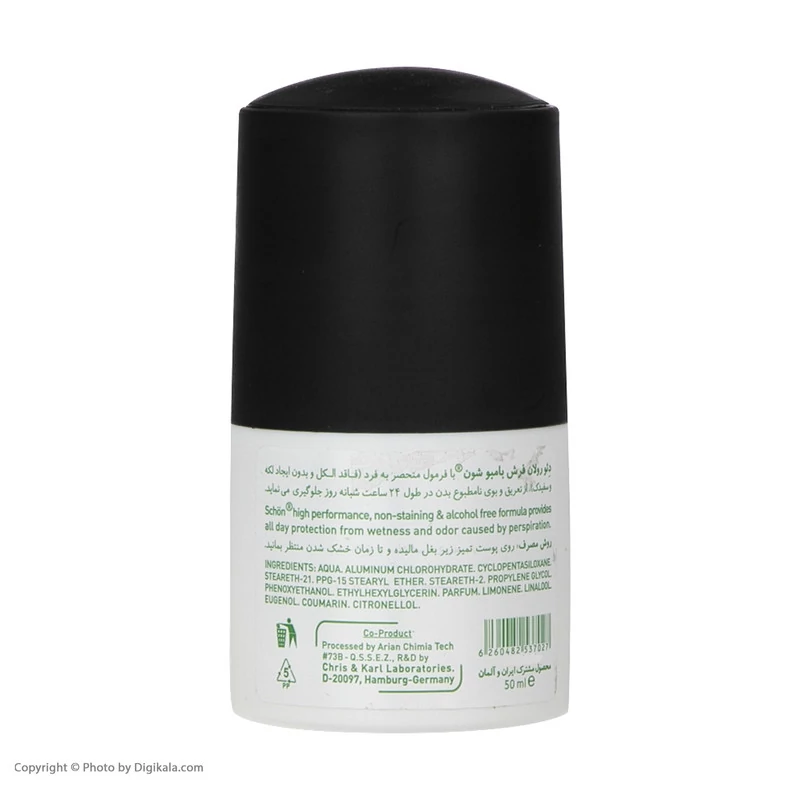 یکی از چیزهایی که میتواند تاثیر منفی روی سیستم عصبی افراد بخصوص در زمانی که خارج از منزل یا در محل کار هستند، بگذارد، بوی عرق است. این مسئله میتواند بکلی ذهن فرد را درگیر کرده و حتی تمرکز او را درهنگام کار برهم بزند. برای جلوگیری از این مشکل بهتر است که در کنار استحمام هر روزه، از دئودورانتها یا همان رولهای ضد تعریق استفاده شود. برند «شون» که متخصص در بکارگیری عصارههای طبیعی گیاهان و میوهها در محصولات خود است، رول «فرش بامبو» (Fresh Bamboo) را برای آقایان در حجم 50 میلیلیتر تولید کرده است. این محصول، دارای رایحهای از ترکیب گل، مرکبات و چوب است. از دیگر مزیتهای آن میتوان به عدم ایجاد لک و سفیدی روی لباس اشاره کرد. همچنین بهدلیل نبود پارابن و الکل در ترکیبات آن، خاصیت ضد حساسیت دارد. دئودورانتهای فاقد پارابن یکی از مدرنترین نوع محصولات دئودورانت هستند. دلیل فرمولاسیون محصولات دئودورانت فاقد پارابن حفاظت از پوست حساس ناحیه زیر بغل که بیشترین محل مصرف دئودورانت را به خود اختصاص میدهد، است.