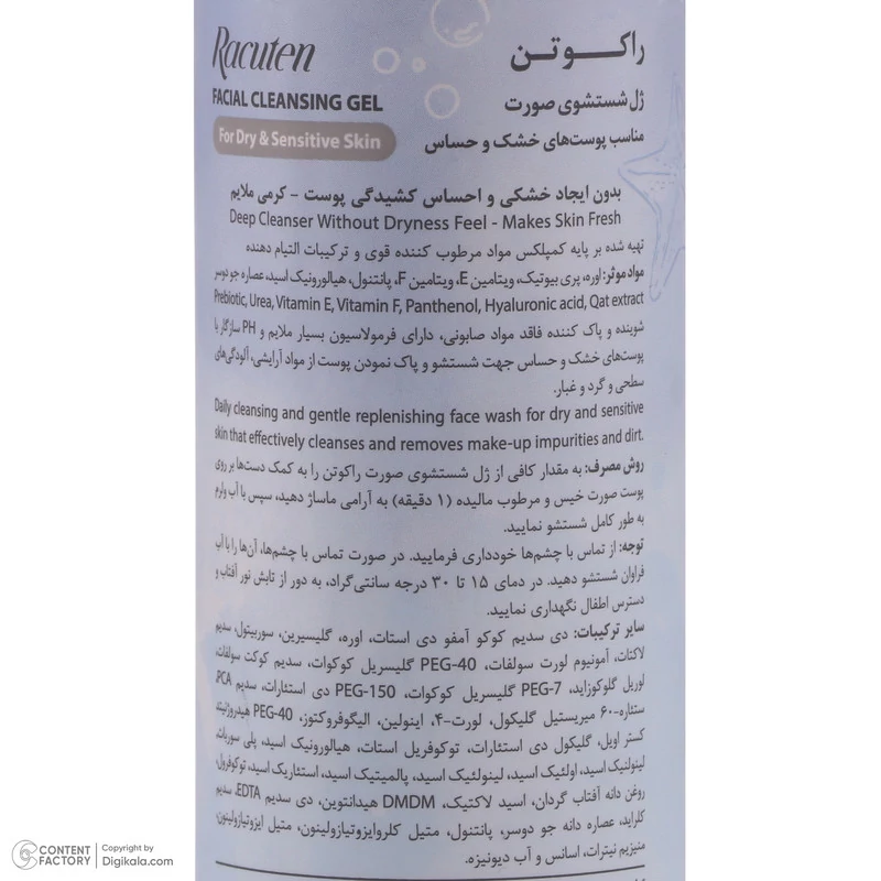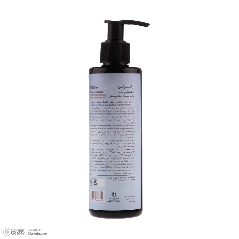 ژل شستشو صورت راکوتن مدل DS مناسب پوست های خشک و حساس حجم 200 میلی لیتر