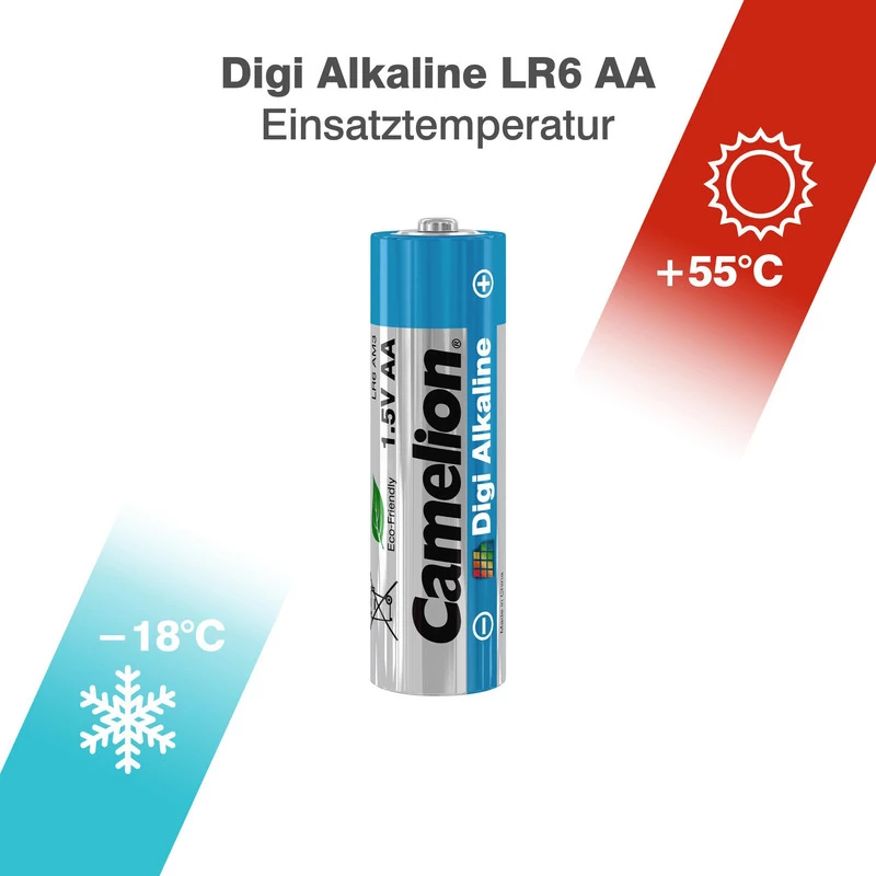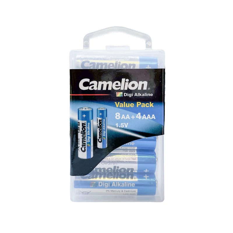 باتری قلمی کملیون مدل Digi Alkaline در بسته 12عددی تولید و عرضهشده است. اندازه آنها 8 عدد AA یا قلمی و 4 عدد AAA یا نیم قلم است. تکنولوژی که در تولید این نوع باتری بهکاررفته، آلکالاین بوده و دارای پایداری انرژی الکتریکی و عمر مفید است. ولتاژ این مدل از باتری های آلکالاین 1.5 ولت است و قابلیت شارژ مجدد ندارد، پس طبیعتاً نمیتوان پس از اتمام انرژی الکتریکی دوباره آن را شارژ و استفاده کرد. مدل «Digi Alkaline» از سری محصولات شرکت کملیون باتریهای قلیایی هستند و چندین برابر بیشتر از باتریهای معمولی ظرفیت دارند و درنتیجه سرویسدهی بیشتری را برای کاربران به همراه میآورند. بهطورکلی قیمت باتریهای آلکالاین از باتریهای معمولی بیشتر است اما با توجه به ظرفیت بیشتر این نوع از باتریها معمولاً بهصرفهتر هستند. این مدل گزینهای مناسب برای تأمین انرژی الکتریکی وسایلی مانند دستگاه فشارسنج، اسباب بازی ها و دیگر دستگاهها به کار می روند.