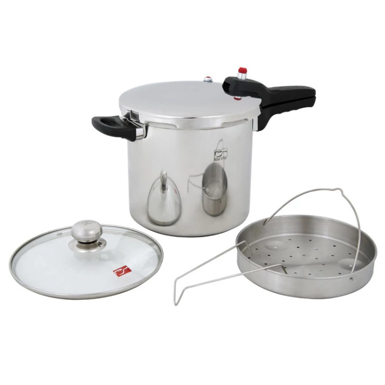ویژگی زودپز: سبد بخارپز, در پیرکس, کف سه لایه, دستگیره بلند