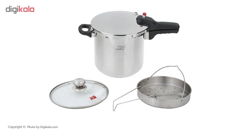 ویژگی زودپز: سبد بخارپز, در پیرکس, کف سه لایه, دستگیره بلند