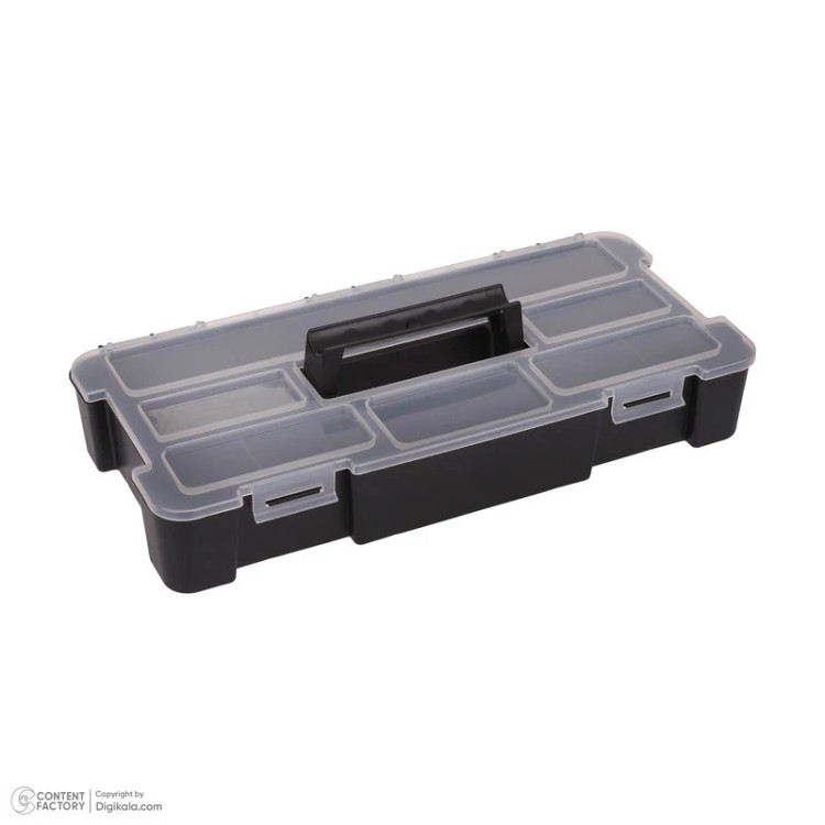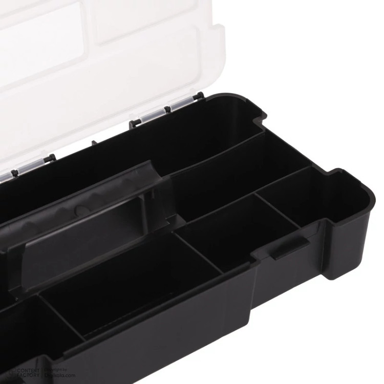 این جعبه دارای 2 طبقه و 9 محفظه کالا است که به راحتی میتوان ابزارهای مختلف را در آن سازماندهی کرد. جنس آن از پلاستیک باکیفیت تهیه شده که علاوه بر جلوگیری از آسیبدیدگی، وزن سبکتری نسبت به جعبههای فلزی دارد.