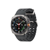 ساعت هوشمند سامسونگ مدل Galaxy Watch Ultra، یک گزینه ایدهآل برای کسانی است که به دنبال ترکیب کارایی و زیبایی در ساعت هوشمند خود هستند. این ساعت با طراحی شیک و مقاوم، بهویژه برای آقایان و بانوانی که از آن در شرایط مختلف استفاده میکنند، مناسب است. ابعاد قاب این ساعت 47.4×47.1×12.1 میلیمتر است و با وزن 60.5 گرم، بهراحتی روی مچ قرار میگیرد. فریم ساعت از جنس تیتانیوم ساختهشده که دوام بالایی دارد، درحالیکه بخش پشتی آن از سرامیک و شیشه سافایر ساختهشده تا مقاومت بیشتری در برابر خطوخش داشته باشد. این ساعت هوشمند دارای صفحهنمایش 1.5 اینچی Super AMOLED با رزولوشن 480×480 پیکسل است که تصاویری شفاف و رنگهای زندهای را نمایش میدهد. از ویژگیهای برجسته این صفحهنمایش، پشتیبانی از حالت همیشه روشن (Always on display) و حداکثر روشنایی 3000 نیت است که امکان مشاهده راحت صفحه در زیر نور مستقیم خورشید را فراهم میکند. Galaxy Watch Ultra مجهز به حسگرهای متعددی مانند سنجش ضربان قلب، سنجش اکسیژن خون، فشارسنج، شتابسنج، قطبنما و ژیروسکوپ است که امکان رصد دقیق وضعیت سلامت و فعالیتهای ورزشی شما را فراهم میآورد. همچنین، این ساعت از GPS برای مکانیابی دقیق و سیستمعامل WatchOS بهره میبرد و با سیستمعاملهای اندروید 10 و بالاتر سازگار است. با باتری 590 میلیآمپر ساعتی و قابلیت شارژ بیسیم، ساعت هوشمند سامسونگ مدل Galaxy Watch Ultra میتواند عملکرد طولانیمدت را در اختیار شما قرار دهد. همچنین، گواهی IP68 و استاندارد نظامی MIL-STD-810H این ساعت را مقاوم در برابر گردوغبار و آب تا عمق 100 متر و فشار 10 اتمسفر میکند، بنابراین میتوانید از آن در شرایط سخت و محیطهای مرطوب هم استفاده کنید.