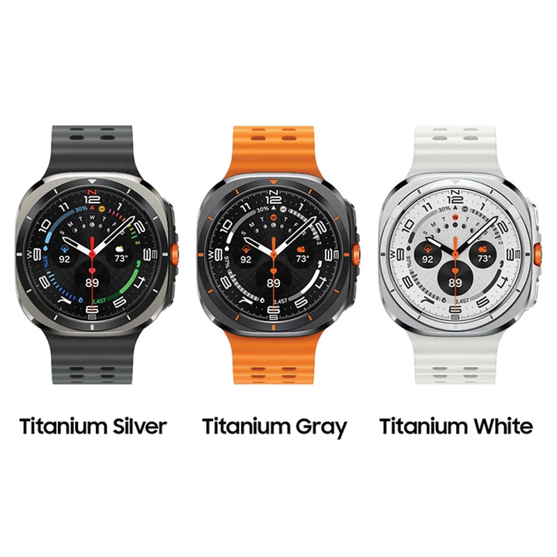 ساعت هوشمند سامسونگ مدل Galaxy Watch Ultra، یک گزینه ایدهآل برای کسانی است که به دنبال ترکیب کارایی و زیبایی در ساعت هوشمند خود هستند. این ساعت با طراحی شیک و مقاوم، بهویژه برای آقایان و بانوانی که از آن در شرایط مختلف استفاده میکنند، مناسب است. ابعاد قاب این ساعت 47.4×47.1×12.1 میلیمتر است و با وزن 60.5 گرم، بهراحتی روی مچ قرار میگیرد. فریم ساعت از جنس تیتانیوم ساختهشده که دوام بالایی دارد، درحالیکه بخش پشتی آن از سرامیک و شیشه سافایر ساختهشده تا مقاومت بیشتری در برابر خطوخش داشته باشد. این ساعت هوشمند دارای صفحهنمایش 1.5 اینچی Super AMOLED با رزولوشن 480×480 پیکسل است که تصاویری شفاف و رنگهای زندهای را نمایش میدهد. از ویژگیهای برجسته این صفحهنمایش، پشتیبانی از حالت همیشه روشن (Always on display) و حداکثر روشنایی 3000 نیت است که امکان مشاهده راحت صفحه در زیر نور مستقیم خورشید را فراهم میکند. Galaxy Watch Ultra مجهز به حسگرهای متعددی مانند سنجش ضربان قلب، سنجش اکسیژن خون، فشارسنج، شتابسنج، قطبنما و ژیروسکوپ است که امکان رصد دقیق وضعیت سلامت و فعالیتهای ورزشی شما را فراهم میآورد. همچنین، این ساعت از GPS برای مکانیابی دقیق و سیستمعامل WatchOS بهره میبرد و با سیستمعاملهای اندروید 10 و بالاتر سازگار است. با باتری 590 میلیآمپر ساعتی و قابلیت شارژ بیسیم، ساعت هوشمند سامسونگ مدل Galaxy Watch Ultra میتواند عملکرد طولانیمدت را در اختیار شما قرار دهد. همچنین، گواهی IP68 و استاندارد نظامی MIL-STD-810H این ساعت را مقاوم در برابر گردوغبار و آب تا عمق 100 متر و فشار 10 اتمسفر میکند، بنابراین میتوانید از آن در شرایط سخت و محیطهای مرطوب هم استفاده کنید.