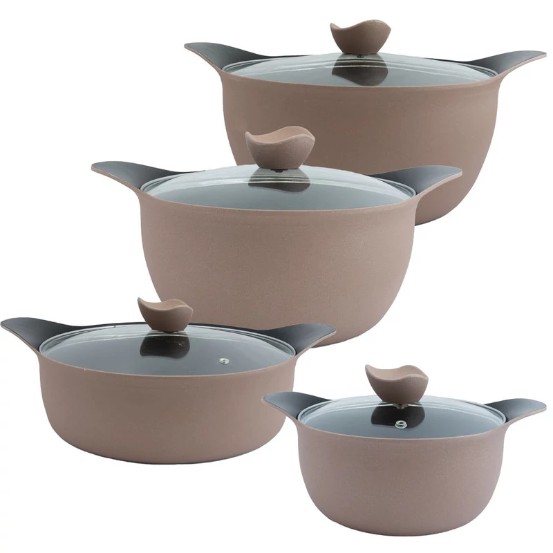 بدنهی این سرویس از آلومینیوم با کفهی سهلایه نچسب ساخته شده که حرارت را بهصورت یکنواخت پخش میکند. روکش داخلی گرانیتی ضدخش از چسبیدن غذا جلوگیری کرده و کیفیت پخت را افزایش میدهد. دستهها بهصورت یکپارچه با بدنهی آلومینیومی ساخته شده تا مقاومت بالایی در برابر ضربه و حرارت داشته باشند.