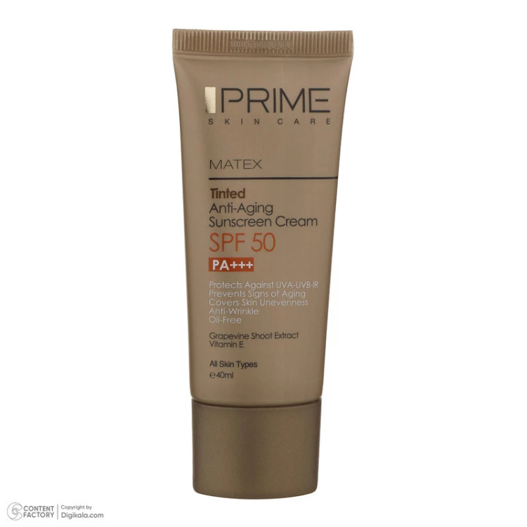 کرم ضدآفتاب رنگی پرایم SPF50 مدل Matex Tinted Rejuvinating مناسب انواع پوست، حجم 40 میلیلیتر