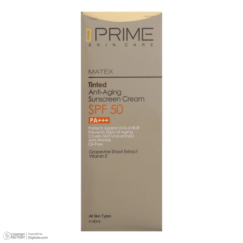 کرم ضدآفتاب رنگی پرایم SPF50 مدل Matex Tinted Rejuvinating مناسب انواع پوست، حجم 40 میلیلیتر
