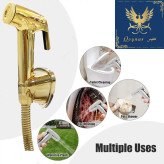 سایر توضیحات: - مورد استفاده برای سرویس بهداشتی و توالت فرنگی - دارای کلید فشاری روی دسته جهت قطع و وصل جریان به صورت مستقل - افزایش دهنده فشار آب- دارای آویز دیواری - صرفه جویی در مصرف آب ،روکش استیل شلنگ ریز بافت، دارای سری تبدیل از جنس ABS قابلیت تحمل کشش مهره فلزی با پوشش طلایی،دارای قلاب از جنس ABS.