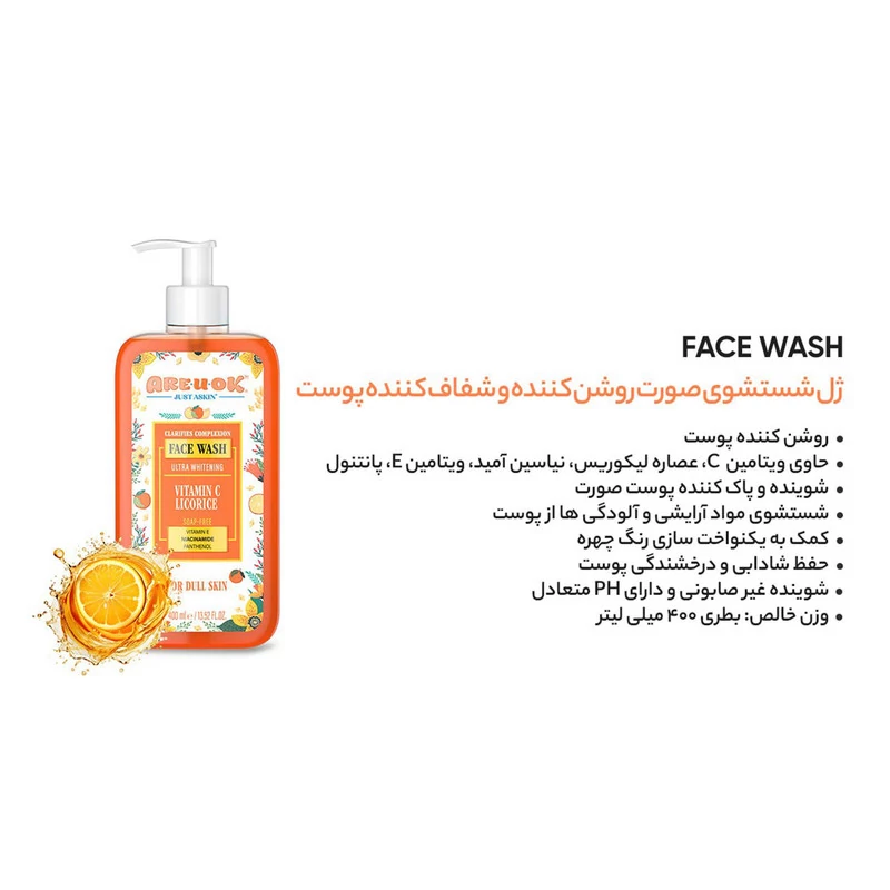ژل شستوشوی صورت آریو اکی مدل روشنکننده مناسب پوستهای مات و کدر حجم 400 میلیلیتر