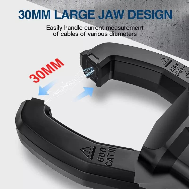 سایر توضیحات: اندازه گیری ولتاژ AC/DC، جریان AC/DC، مقاومت، ظرفیت خازن، فرکانس، دیود، تداوم و سیم برق و تست NCV با عملکرد هشدار خاموش شدن خودکار: حدود 15 دقیقه چراغ قوه LED داخلی، مناسب برای استفاده در شب یا محیط تاریک دهانه فک: 30 میلی متر
