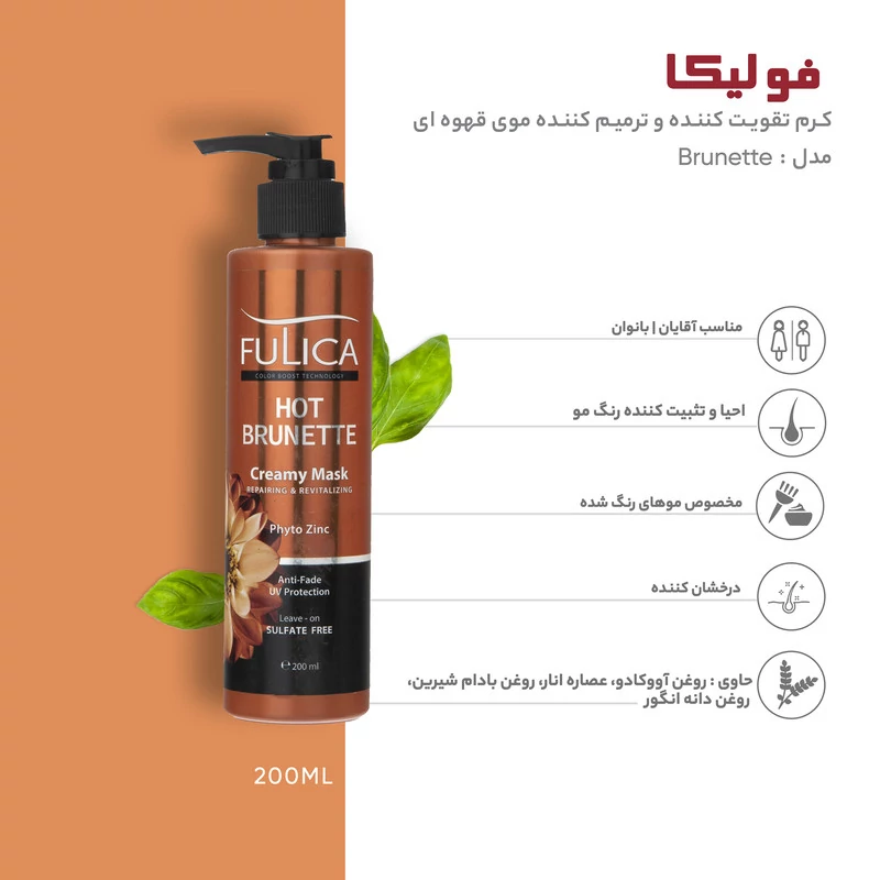 کرم تقویت کننده و ترمیم کننده موی قهوه ای فولیکا مدل Brunette حجم 200 میلی لیتر