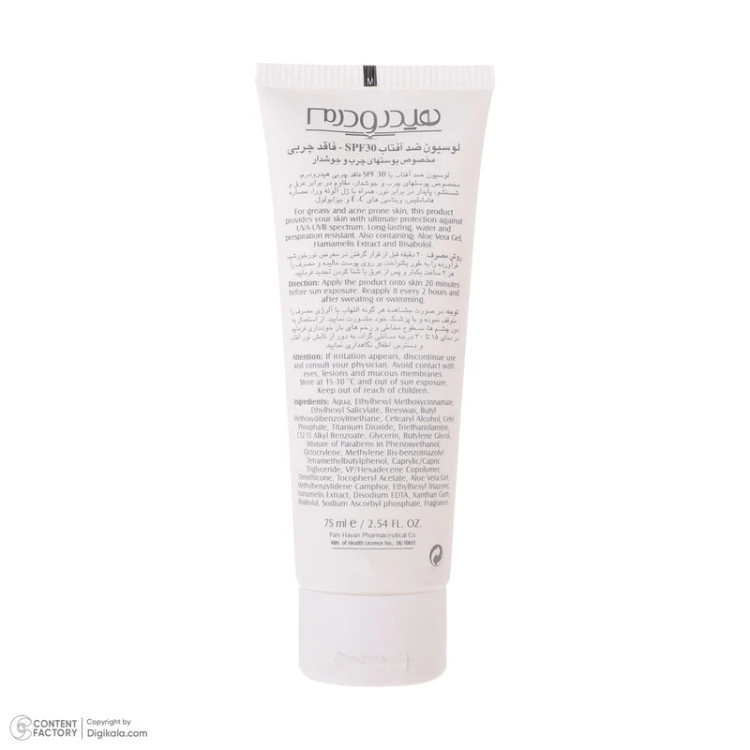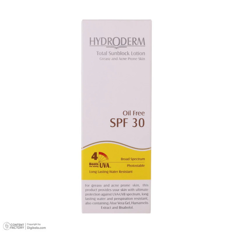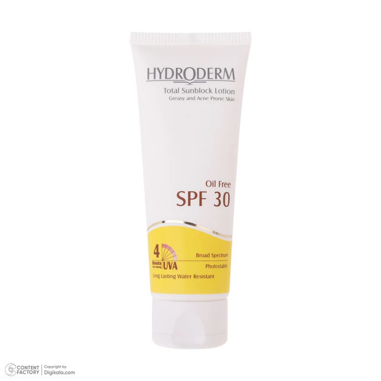 لوسیون ضدآفتاب هیدرودرم سری فاقد چربی SPF30، حجم 75 میلیلیتر
