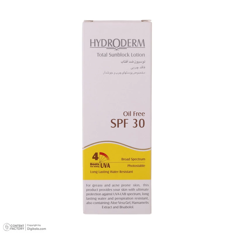 لوسیون ضدآفتاب هیدرودرم سری فاقد چربی SPF30، حجم 75 میلیلیتر