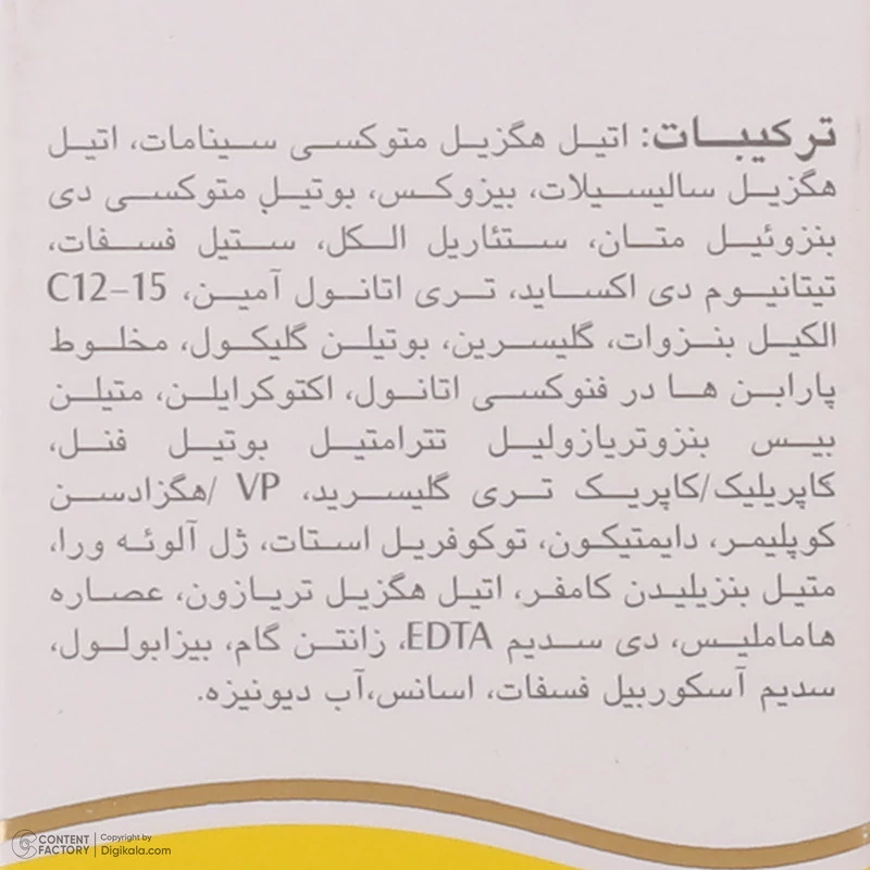 راهنمای استفاده: نيم ساعت قبل از خارج شدن از منزل و يا محل کار به مقدار کافی از فرآورده را بر روي نقاطي از پوست که در معرض تابش نور خورشيد قرار دارند ماليده و به خوبی ماساژ دهيد. اين عمل را هر دو ساعت يکبار تجديد کنيد.