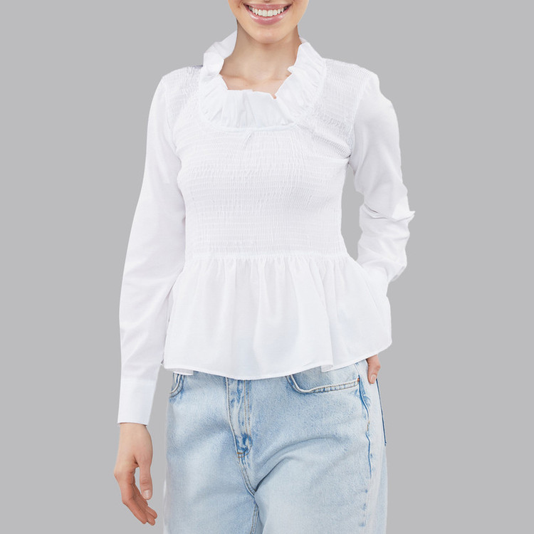 بلوز آستین بلند یقه خشتی زنانه مدل 812235585 طرح ترندیول