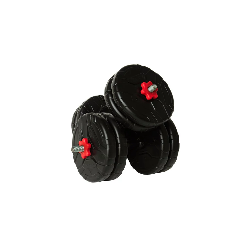 دمبل مدل DVP-10-2500 وزن 10 کیلوگرمی بسته دو عددی شامل یک جفت دمبل 10 کیلویی (مجموعا 20 کیلو) است که به طور ویژه برای استفاده خانگی طراحی و ساخته شده است مهمترین ویژگی این محصول، ارگونومیک بودن و طراحی چشمنواز آن است؛ روکش وزنههای این دمبل از پلاستیک بوده که این کار علاوه بر زیبایی، مانع آسیب دیدن وزنهها و آسیبرساندن آنها به محیط اطراف میشود، دستههای این دمبل از جنس پلاستیک بوده و طراحی و مواد آن بهگونهای است که مانع آسیب رسیدن به کف دستها شود. دمبل متغیر 5 تا 10 کیلوگرم شامل 4 صفحه 2.5 کیلوگرمی بوده و در وزن های 5 و 10 کیلوگرم قابل استفاده است. یعنی با خرید این دمبل در عمل دو دمبل در اختیار دارید؛ دمبل 5 کیلویی و 10 کیلویی یکی از برتریهای این دمبل نسبت به نمونههای مشابه در بازار، جنس نانوکامپوزیت وزنههاست. این ماده مدرن و پیشرفته دارای مقاومتی بالاتر از چدن است اما مشکلات چدن مانند شکنندگی، زنگزدگی، آسیبرسانی و ... را ندارد. همین موضوع باعث شده که دمبلها گزینهای ایدهآل برای مصارف خانگی به طور خلاصه میتوان مزایای کلیدی این محصول را اینگونه عنوان کرد: - ظاهری بسیار زیبا و مدرن - تولید شده از مواد درجه یک و بادوام - امکان استفاده در چند وزن مختلف - امکان اضافه کردن وزنه دارد