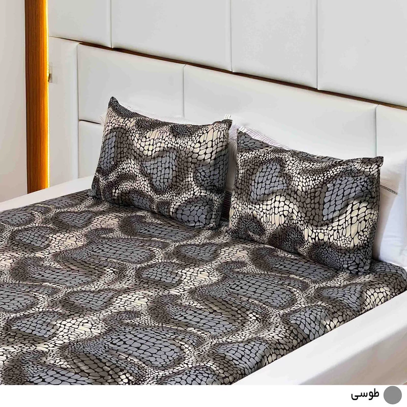 سرویس ملحفه دو نفره سه تکه مشتمل بریک عدد کاور کشدار تشک به همراه دو عدد روبالشتی است. در تار و پود پارچه این محصول نخ فیلامنت که موجب درخشندگی آن شده، استفاده شده است. بافت پارچه کجراه است که سبب میشود در عین لطافت استحکام بالایی داشته باشد. این محصول مناسب تختهای سایز استاندارد یعنی عرض 160سانتی متر و طول 200 سانتی متر است. اگر تخت شما قطر 20 متر داشته باشد علاوه بر پوشش قطر تشک مقداری از پارچه به زیر تشک میرود که این سبب زیبایی بیشتر تخت و جلوه بیشتر سرویس خوابتان میشود. سبک بودن آن موجب شده تا به رده محصولات پرطرفدار سرویس خواب بپیوندد. از دیگر ویژگی های این محصول می توان به1- به صرفه و بادوام 2-لطافت درعین استحکام 3-استفاده از کش پهن در رو تشکی اشاره نمود. شیوهی شستوشو صحیح این محصول به شرح زیر است: 1-حداکثر دمای آب 30 درجه سانتی گراد باشد 2-اصلا از پودرهای آنزیمدار استفاده نشود ، بهتر است که از مایع پارچههای مشکی (مشکین شوی) استفاده شود 4-از مواد سفید کننده استفاده نشود 5-رنگ های تیره جداگانه شسته شوند.