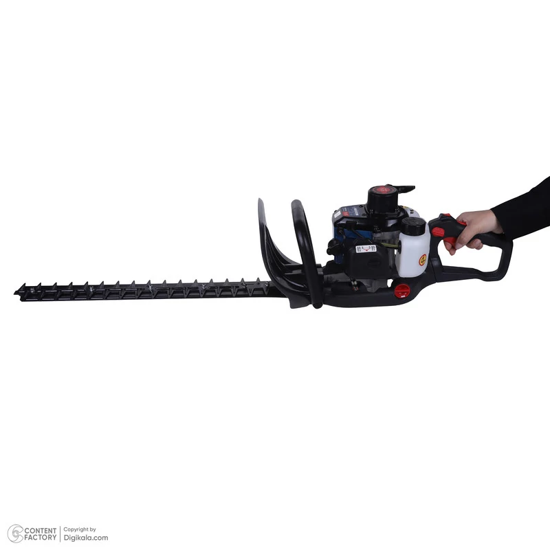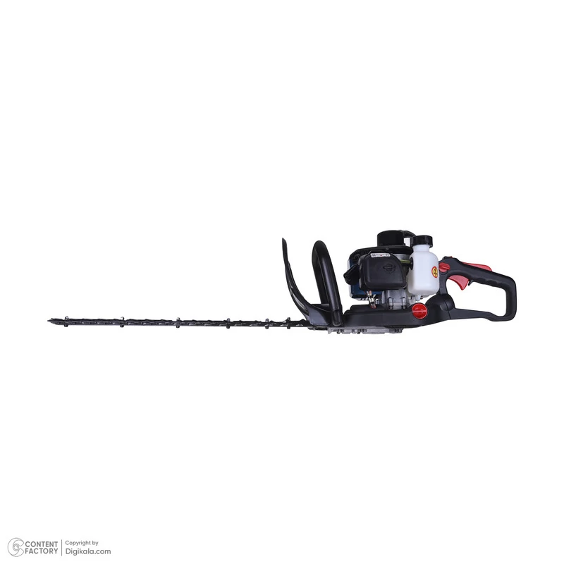 این مدل با وزن ۵.۸ کیلوگرم و ابعاد ۱۱۰x۲۶.۵x۲۶.۵ سانتیمتر، تعادل مناسبی در حین کار ایجاد کرده و امکان استفاده طولانیمدت بدون خستگی را فراهم میکند. تیغهی ۶۰ سانتیمتری آن محدوده برش وسیعی را پوشش میدهد و سرعت حرکت تیغه که به ۹۵۰۰ دور در دقیقه میرسد، قدرت بالایی در برش شاخههای متراکم ایجاد میکند. موتور ۲۲.۵ سیسی با توان ۶۵۰ وات انرژی لازم برای کارهای سنگین باغبانی را به خوبی تأمین میکند و استفاده از سوخت بنزینی، استقلال بیشتری در محیطهایی که دسترسی به برق دشوار است به کاربر میدهد.